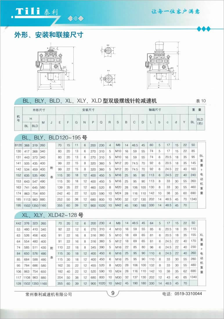 泰利B/X系列摆线针轮减速机外形安装尺寸图